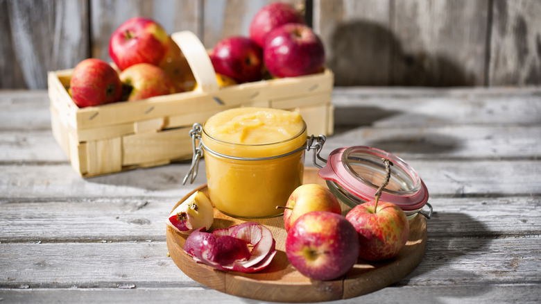 If pumpkins are the undisputed number one thing that tastes like fall, surely apples are a very close second. The season has them in fruitful abundance, and most of them end up in pies, crumbles, and applesauce. Applesauce is one of those treats that both kids and adults can agree on — it's sweet, it's healthy, it's delicious; the perfect trifecta. But if we are honest, the flavor can feel a bit monotonous when you're buying store-bought applesauce. It's often missing a little extra oomph. Luckily, you can elevate any store-bought applesauce with a simple kitchen staple: butter. Specifically, brown butter is the perfect way to add more flavor to your applesauce.