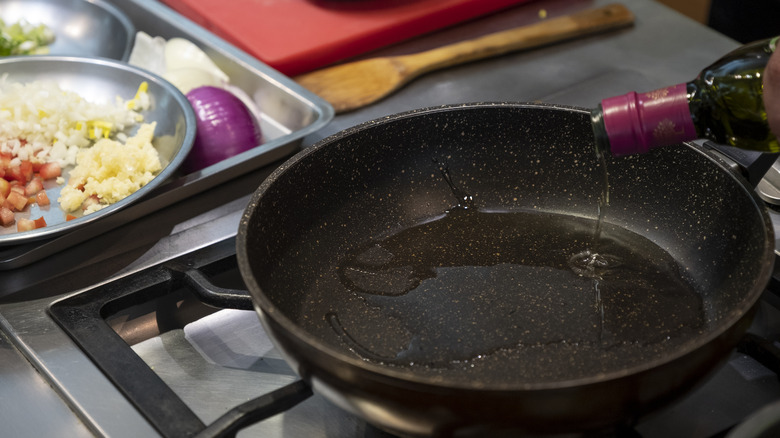 As even novice home cooks know, in the kitchen, selecting the right tool for the job can make all the difference. Remember the moment when you learned to cut loaves of bread using a serrated knife rather than desperately hacking into them with a chef's knife? There's a reason why knife blocks come outfitted with an array of different knives for achieving different purposes. The same principle is true of cookware — and so, when is the wok the right tool for the job, and when should home cooks reach for a skillet instead?