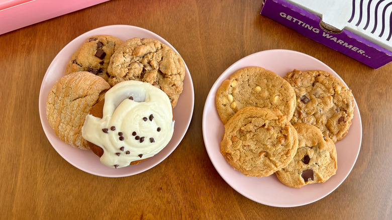 Overall, I found myself enjoying Insomnia's cookies more so than Crumbl's, and this is coming from someone who is a fan of both chains. I do appreciate that Crumbl keeps things fresh and interesting with its rotating menu and growing selection of desserts, but Insomnia's menu is nothing to gloss over, either. With a consistently broad range of cookie flavors, including seasonal options, there's no denying that Insomnia has a better flavor range than Crumbl. Moreover, despite Crumbl venturing into the world of cakes and puddings, Insomnia has a pretty impressive range of non-cookie desserts, too, including brownies, ice cream, and even ice cream sandwiches.