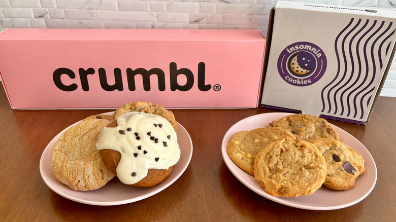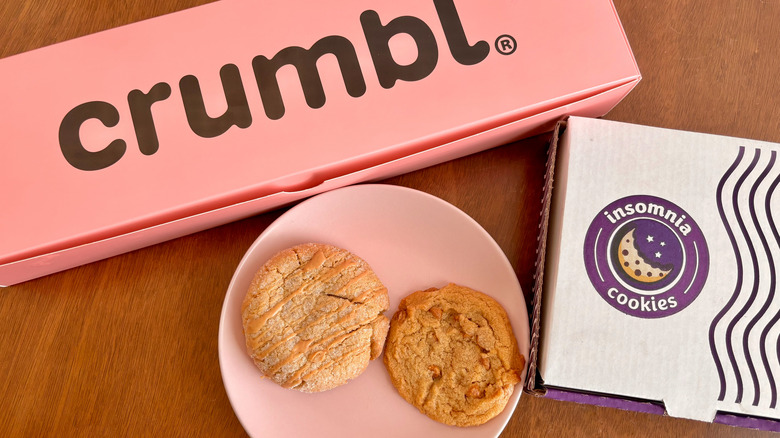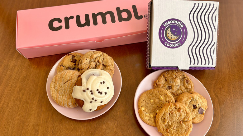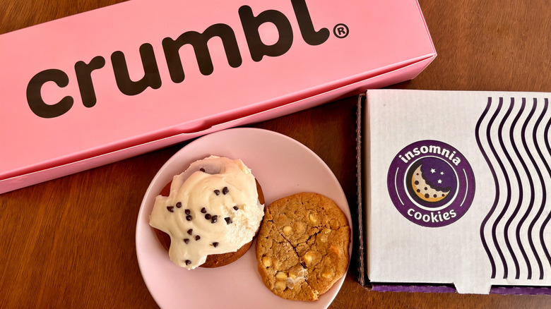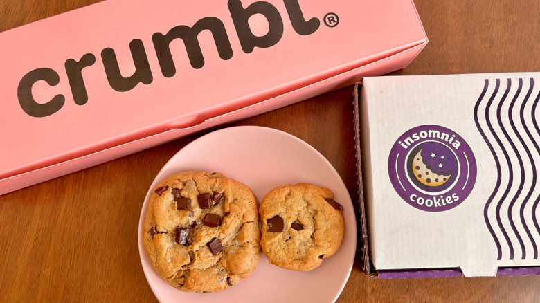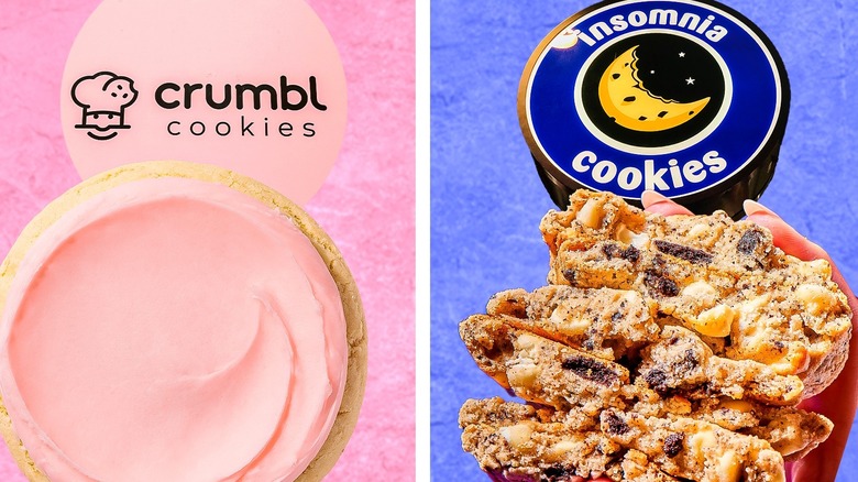 There are seemingly endless places to grab dessert, depending on what you're in the mood for. Looking for a cake or a pastry? Then, a bakery is your best bet. Is ice cream the only thing that will satisfy your sweet tooth? Then, a trip to an ice cream shop or parlor is the only answer. Are cookies more up to your speed? Well, you're especially in luck on that front, as two major cookie chains — Crumbl Cookies and Insomnia Cookies — offer up an abundance of sweet treats to keep even the pickiest of cookie lovers satisfied.