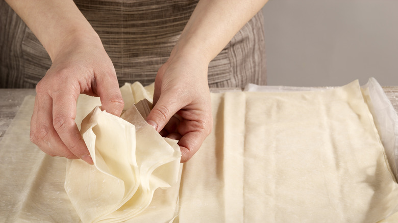 Alcaraz has shared some of his tips for perfecting this recipe with us. He says that since phyllo dough dries out very quickly, it would be best to cover it with a damp towel to preserve that moisture. Brushing the stick immediately after it's shaped with butter will also help preserve that moisture and keep your brooms flying on Halloween night and beyond.