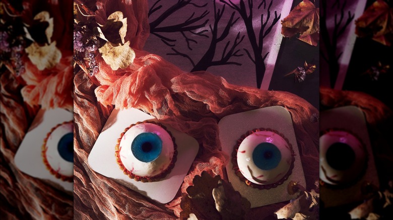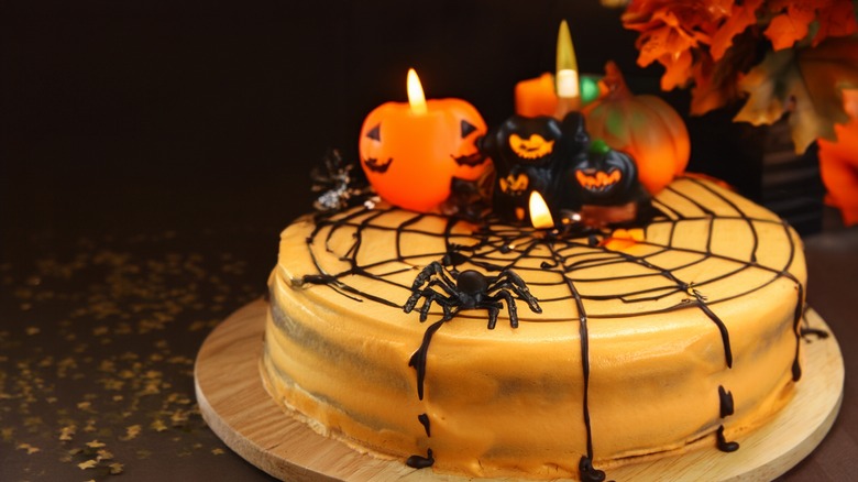There are some major shifts that happen during the fall months. It's not the pumpkin spice lattes being added to the menu in lieu of summery lemonades, kids going back to school, or the temperatures starting to drop, either. Rather, you'll notice a major seasonal shift in the selection at your local bakery, too. The summery lemon cakes fade into memory as the fall cupcakes, cookies, and cakes take the shelves in mass. If you're hosting a fall, or more specifically, a Halloween gathering, you may be really tempted to pick up a pack of those ho-hum, orange-frosted cupcakes and be well on your way. But you are more than capable of making Halloween decorations for your cakes (and really, all desserts) in your home kitchen — with a little help from the professionals, of course.