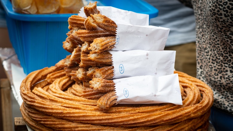 Bayless explains that, in Mexico, it's all about the freshness of the churros. The Americanized version of the dessert will try to distract with endless toppings and fillings, while the churro itself is lackluster. For the best churros, Bayless recommends looking for street vendors that will fry the donut-esque treat before your eyes. Or, better yet, he suggests taking a trip to El Moro Churrería in Mexico City, where the churros are fresh-fried — always. "It's worth going to Mexico City just to eat those churros," he says.