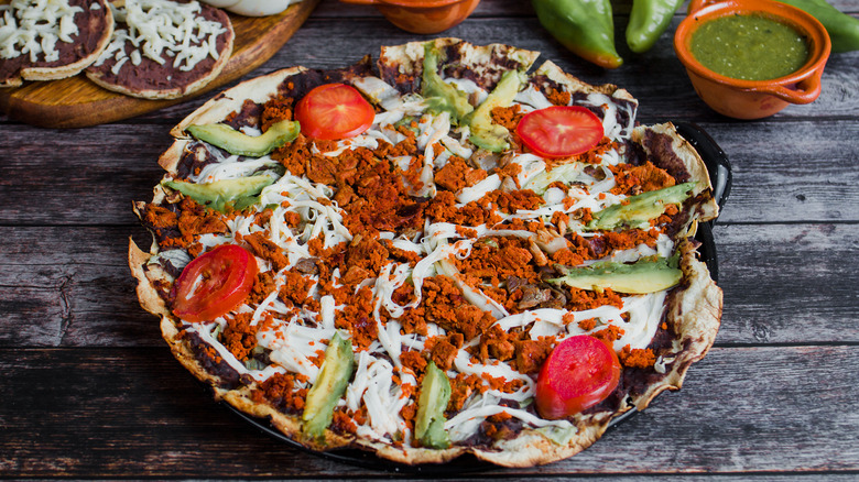 We all love a big, hefty tortilla, smothered in cheese from time-to-time, but tlayudas probably aren't like any type of flatbread you've seen before. These flatbreads are 14 to 15 inches in size, which shifts them into pizza crust territory. And Rick Bayless shares that this, in fact, is one of the common uses for the tlayudas. He explains that these tortillas are thin and crispy, like a tostada, so they can be used to support an array of hefty toppings. Bayless also says that these tortillas can be tucked with cheese and meats and served — kind of like a quesadilla.