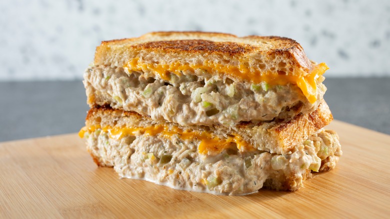 Ah, diner food. There are so many different things you can order, from towering greasy burgers to cups of shockingly red Jell-O. But, one diner food that doesn't get enough credit? The tuna melt. This classic sandwich is made with salty, umami-rich canned tuna, smothered in a delectable layer of melted cheese. Once you spice up your sandwich with some crunchy additions, like chopped celery or crunchy pickles, you're golden. But you can always take things one step further.