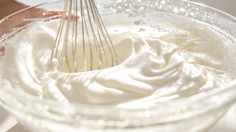 Whether it comes straight from a can or triples in volume by hand, whipped cream is a beloved and easy way to add a bit of indulgent, creamy silkiness to a dessert. At its most basic, it's nothing more than heavy whipping cream, a bit of powdered sugar, and possibly vanilla and a pinch of salt, beaten into silky peaks that seem to defy the earth's gravitational pull. The average whipped cream, however, has a very short life span, giving it only an ephemeral window of time to be enjoyed before becoming weepy or turning whatever it's resting on top of into a soggy mess. Fear not, as thankfully there is an inexpensive, shelf-stable ingredient that will take your whipped cream frosting from sad to sturdy: gelatin.