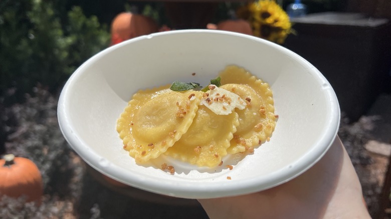 Nothing says comfort food like a pillowy pocket of pasta stuffed with fresh produce and cheese, and Forest and Field's Pumpkin Mascarpone ravioli is an ideal way to get your pumpkin fix early in the holiday season. The Italian-inspired dish is simple yet satisfying, and its rich, velvety filling really hits the spot when you're in need of a quick bite at Epcot.