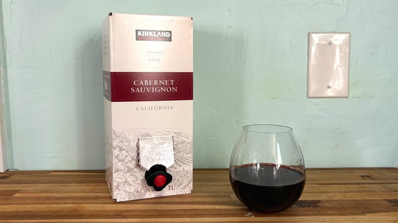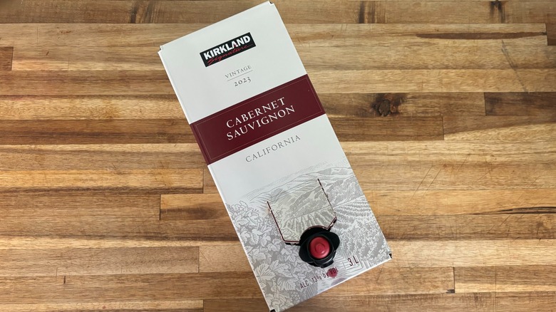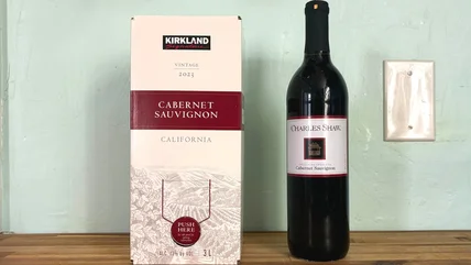I could only find a three-liter box of Kirkland Signature's cabernet sauvignon at my local Costco, and it cost me $14.99, which comes in at about $.15 per fluid ounce. So, although I spent more on a larger quantity of Kirkland's wine than Trader Joe's offering, the monetary value of each wine is about the same. This cabernet sauvignon is also made from California grapes. Its elements of boldness, acidity, tannins, and sweetness have been similarly rated to those of the Charles Shaw brand, with customers mentioning its oaky notes above anything else.