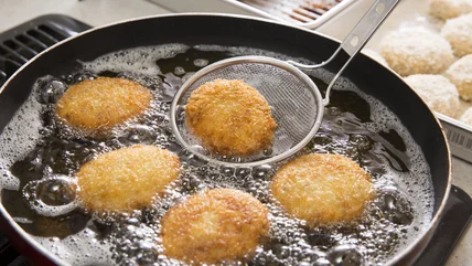 After you've enjoyed the deep-fried deliciousness, and the oil has fully cooled, you may be able to save the oil if it's still fairly clean and there isn't too much floating around from anything battered or breaded. Check out our guidelines to see if you can reuse your frying oil before throwing yours away. If it's good to reuse, use a fine mesh strainer lined with a paper towel or cheesecloth to strain out any debris from the cooled oil before storing in a dark, cool cabinet or in the refrigerator. Save and reuse this oil for future deep frying now that you have the confidence and the essential kitchen tools to become a deep frying professional.