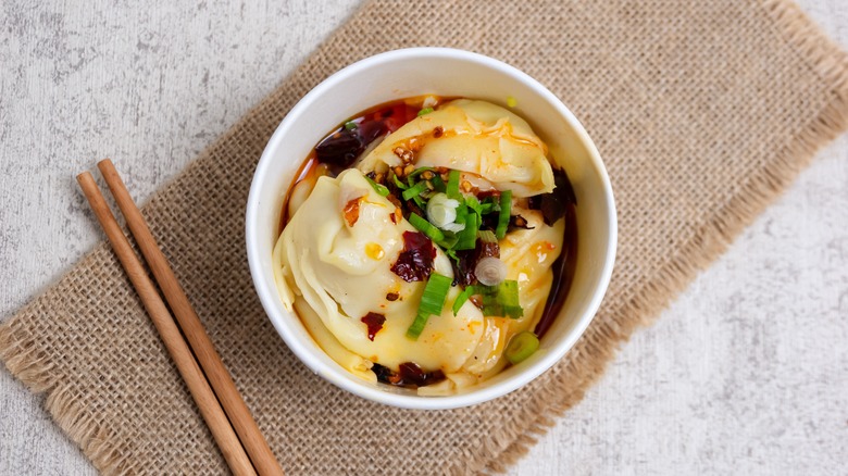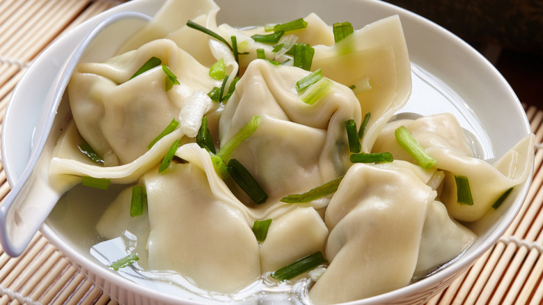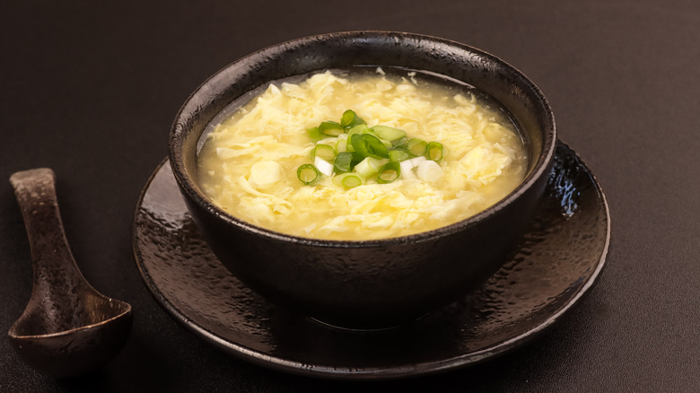 You might have seen egg drop soup on your local Chinese eatery's menu and been put off by eggs being in, well, soup. The truth is that the eggs give the soup a silky texture with a hint of egg flavor that melds well with the broth and wontons. There's even a tip to make silky egg drop soup with indirect heat if you want to make it at home. Traditionally, the soup consists of chicken broth, soy sauce for umami, a thickener like cornstarch, and a garnish of fresh chives to finish. Sometimes wontons make it into the bowl, especially at Chinese-American restaurants. However, wontons are not necessarily true to a classic rendition of the soup.