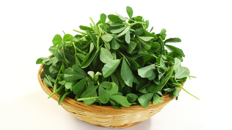 A special mention needs to go to the herb fenugreek, as it's not as common in Western cooking but plays a big flavor role in Persian dishes. You'll find fenugreek leaves to be a dominant flavor in many dishes, including the popular ghormeh sabzi, a braised meat and herb dish, where fenugreek is one of the star ingredients. Fresh fenugreek leaves tend to be bitter until they're cooked down, and produce a sweeter flavor with a hint of pleasant bitterness. If you can't find fresh fenugreek, it's possible to use dried fenugreek instead.