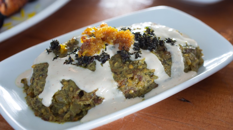 What's even more unique is that both fresh and dried herbs are used together, and dried herbs are also used in large quantities. For example, there's an herbaceous Persian noodle soup called ash reshteh, which is often cooked for Nowruz, the Persian New Year celebration. This dish is said to be marking the beginning of spring and new life; that's why it's packed with greens. While recipes all differ depending on preference and availability, ash reshteh sometimes calls for a combination of fresh parsley, cilantro, dill, fresh and dried fenugreek leaves, and dried mint.