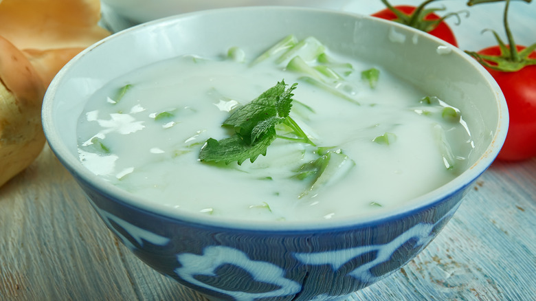 An ingredient that couldn't be easier to keep is plain or natural yogurt. You may already have some in your fridge, and it's one of the most common things you'll find on a Persian table. Its cooling creaminess helps temper any dish you have it with, and it's sometimes served alongside an elaborate meal of rice and stew, or it's been whipped up into a simple salad or dip with some raw vegetables and herbs.
