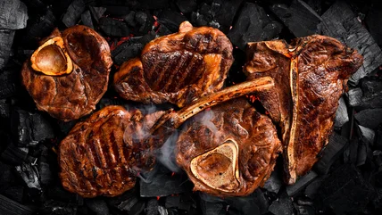 A cut surrounding the cow's massive rib bone, the tomahawk is, according to Chef K.C. Gulbro, similar to a Cowboy cut. "It's a large ribeye with a bone that can measure from 1-4 feet," he said. Tomahawks have great marbling, equating to an ultra-rich flavor and high-quality tenderness. The porterhouse surrounds a T-bone, which contributes to its flavor and juiciness. "It delivers both awe and shock," Gulbro explained. "The awe comes from how amazing it looks on the plate, giving it a serious wow factor, but the shock comes from the price. You have to pay for the extra weight of the bone, which can add a pound or two to the cost." If you're willing to shell out those extra dollars, the taste is as impressive as the presentation.