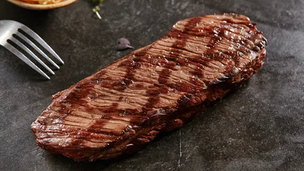 Although the ¼ cup of chopped red onion in the marinade may seem like overkill, due to its much sharper bite than yellow onions, you could soak them in water first to mellow them out, but the red wine vinegar will do the job just as well. The two cloves of garlic and two sprigs of fresh rosemary add flavor and aroma, but rosemary purportedly also reduces the carcinogenic toxins released when grilling meat. Gulbro recommends marinating the Denver steak for two to four hours (longer than that can turn the meat's exterior to mush). Once cooked, let the steak rest before slicing it against the grain. For a final flavor flourish, Gulbro suggests serving the steak with pesto.