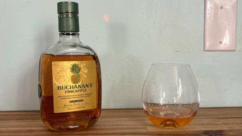 Rather than considering this a unique delicacy in a class of its own, it's clear that Buchanan's crafted this bottle to appeal to a particular audience. Buchanan's Pineapple gets its juicy, fruity flavor by infusing real pineapple juice into its blended whisky, which has been aged in oak barrels for at least eight years — and I appreciate that the company used a potent form of pineapple rather than opting for something subtler. Additionally, the brand seemingly didn't cut any corners when crafting this delightful blend; it sourced its pineapple juice directly from fruit grown in Latin America. In doing so, Buchanan's further honors its longstanding connection with the region.