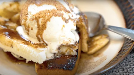 If you don't have access to a grill but would still like a bit of smoky flavor in your plated dessert, reach for liquid smoke to add to your butter and brown sugar syrup. Add chopped walnuts or pecans to the simmering mixture and flavor your sauce with vanilla extract and ground spices like cinnamon or pumpkin pie spice for a seasonal touch. Of course, rum is the final gem in this recipe's crown before the oozing sauce is poured over the grilled bananas and served with vanilla ice cream. Plates will appear to clean themselves once this treat is served.