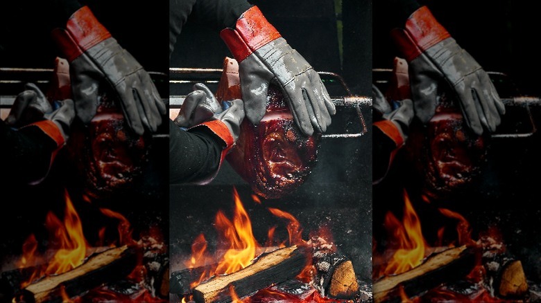 All you need is $6.99 to get your hands on some Teenitor heat-resistant gloves (yes, the same ones that are used to prevent curling iron burns). While you can technically use tongs or even a spatula to flip and transfer your steak, heat-resistant gloves give you much more control. Even if you do use basic kitchen tools directly on your meat, when you're firing up the grill, you're exposing your fingers, wrists, and arms to high temperatures. Don't just take it from us — heat-resistant gloves are kitchen gadget staples for celebrity chefs, including Tyler Florence, when it comes to cooking steak in particular. Options like dish towels work in a pinch, but they're still flammable while gloves generally aren't. Plus, these affordable tools can really take the heat, with options like these Grill Armor Gloves that can withstand temperatures of up to 900 degrees Fahrenheit.