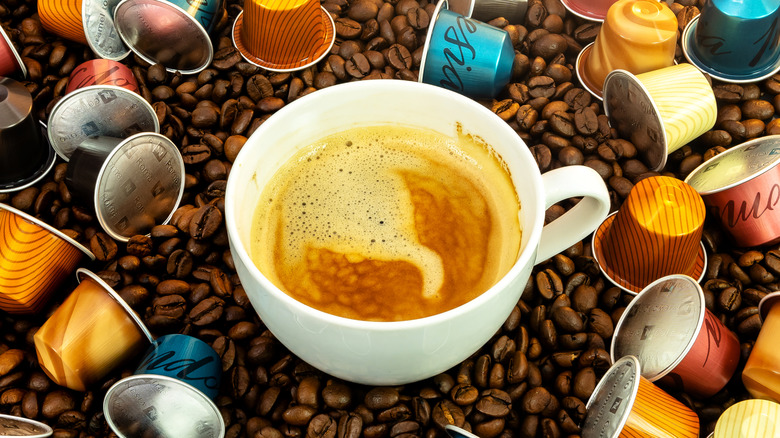 For comparison, Nespresso's other espresso pods usually contain 50 to 100 milligrams of caffeine per cup, so Diavolitto comes with a significant boost. The company does make clear, however, that the exact amount of caffeine in each pod is hard to determine because it depends on several different factors, such as bean origin and extraction method. Therefore, caffeine content can differ even within the pods of the same line — that's why Nespresso is more comfortable discussing approximates and ranges rather than definite numbers. You should also know that the intensity levels marked on the pods do not represent caffeine content; they represent the intensity of the coffee flavor.