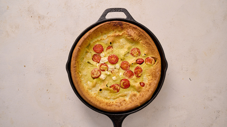 Pancakes are a brunch staple, a must-have between mounds of bacon and piles of scrambled eggs. While vital to a great breakfast spread, pancakes aren't exactly easy to whip up, especially in large batches. The solution is a single-skillet pancake called a Dutch baby that rises dramatically in the oven while you finish making breakfast. Though it tastes like one, the Dutch baby is hardly a pancake, nor is it Dutch- or baby-sized. Instead, it's more similar to an oversized popover, which means it can be just as versatile, too.