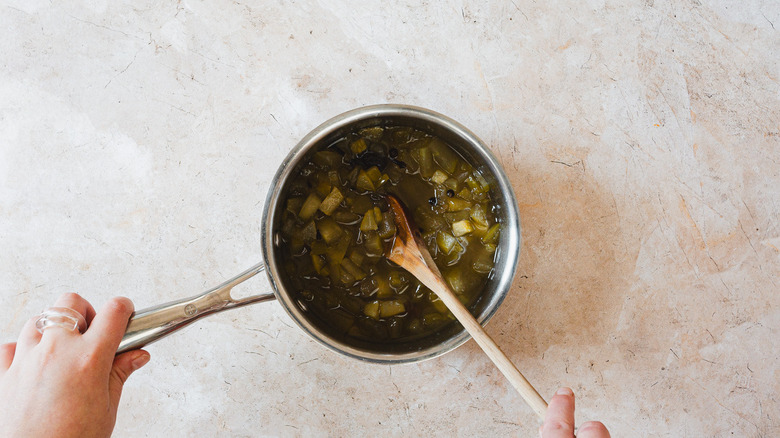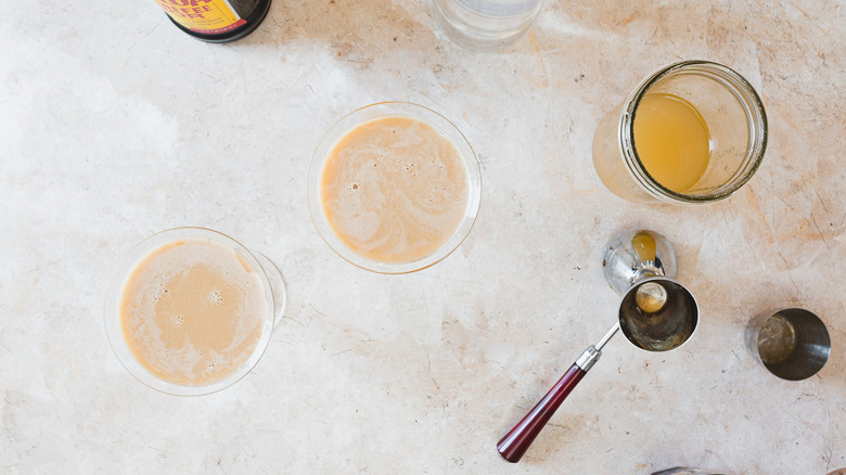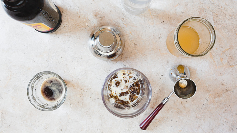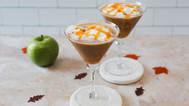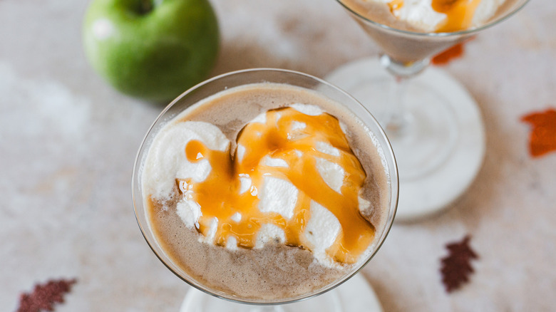 It all starts with a homemade spiced syrup made out of tart Granny Smith apples and a whole load of apple pie spices: cinnamon, nutmeg, allspice, and cloves. From there, the fun continues with vodka, coffee liqueur, condensed milk, and strong brewed espresso. The crowning glory is a heaping topping of whipped cream and a caramel drizzle that really takes the sweetness to another level. The whole thing feels like a celebration of what an adult thinks a kid's birthday party should look like, but somehow ends up tasting good — as long as you like things a little on the saccharine side, of course.
