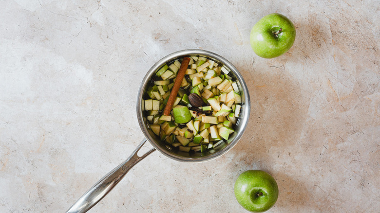 The sweetness of this caramel apple espresso martini can be easily adjusted to suit your taste. One of the easiest ways to control the sweetness is to change up the type of apples used in the homemade apple syrup. Our recipe calls for Granny Smith apples, which are naturally tart and will result in a less sweet syrup. If you prefer a sweeter drink, consider using sweeter apple varieties like Fuji, Gala, or Red Delicious. You can also adjust the amount of sugar in the spiced apple syrup, reducing it by up to half for a less sweet version. You could also add the juice of half a lemon to the syrup to make it more tart. Keep in mind that sugar not only adds sweetness but also affects the texture of the syrup, so you don't want to go too extreme here.