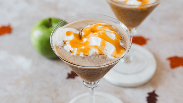 For a concentrated apple flavor without too much added sweetness, consider a teaspoon of apple jelly. This option incorporates the apple taste without significantly altering the drink's sweetness or consistency. In this case, you'll also want to omit the caramel drizzle to avoid an overly sweet drink. You could also use Calvados, an apple brandy, which adds both apple flavor and an extra alcoholic kick. With all substitutions, taste and adjust other ingredients in the shaker as needed to achieve the perfect drink for you (and your guests).