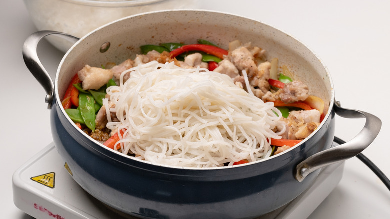 There's an almost dizzying variety of noodles available today on the supermarket shelves, and it can be hard to know which ones to reach for when preparing your meals. Flat rice noodles make an excellent option here and are what Jennine Rye uses for this specific dish. Rice noodles offer a tender and chewy texture, and their lightness works well with the other elements of this dish. They also make the stir-fry accessible to anyone who has an intolerance or allergy to gluten. The higher the content of tapioca or cornstarch in rice noodles, the denser and chewier they will become.
