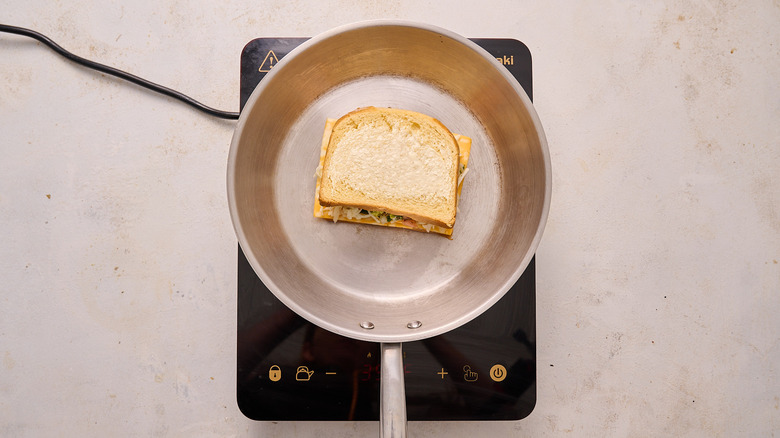 - Add a sandwich and brown it on one side, about 2 minutes, then flip and brown the remaining side.