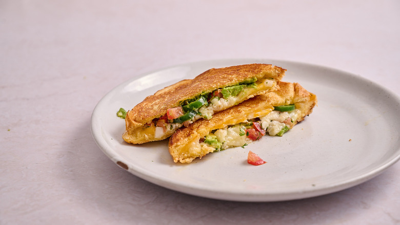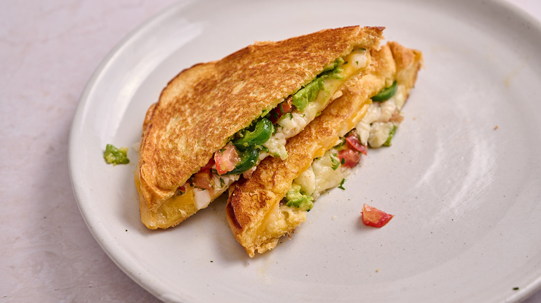 There's no limit to the variety of ingredients that can make grilled cheese better, and the comfort food of southern Texas is no exception. Tex-Mex, a label given to Texas-born Mexican food like chili, fajitas, quesadillas, and nachos, is the perfect pairing for melty cheese, especially with queso being a leading component of this fusion cuisine. In this recipe written with developer Michelle McGlinn, Tex-Mex is infused into a Colby and Monterey Jack-filled sandwich with the addition of pico de gallo, jalapeños, and smooth creamy avocado. Like queso in sandwich form, this grilled cheese is perfect for the cheese lover who wants the heat of Tex-Mex cuisine, too.