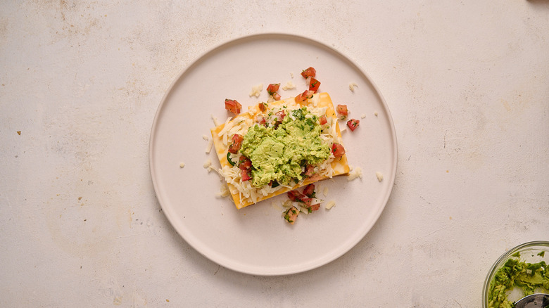 - Add the pico de gallo and smashed avocado.