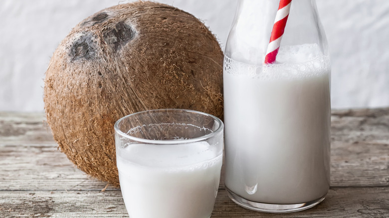 For many people who don't drink dairy milk, when concocting a daily cup of coffee, the creamer choice usually comes down between oat, soy, or nut milks. One often overlooked alternative is coconut milk. Coconut milk is creamy, with a delightful coconut flavor that complements and balances out coffee's bitterness beautifully. Even for people who drink dairy, coconut milk is a gloriously silky ingredient that can be added to enhance frozen coffee. Your blender will pulse any clumps smooth, and help the coconut milk emulsify completely into your coffee. And if you don't like overly sweet drinks, you probably don't even have to add a sweetener, as coconut milk has a natural sweetness to it.