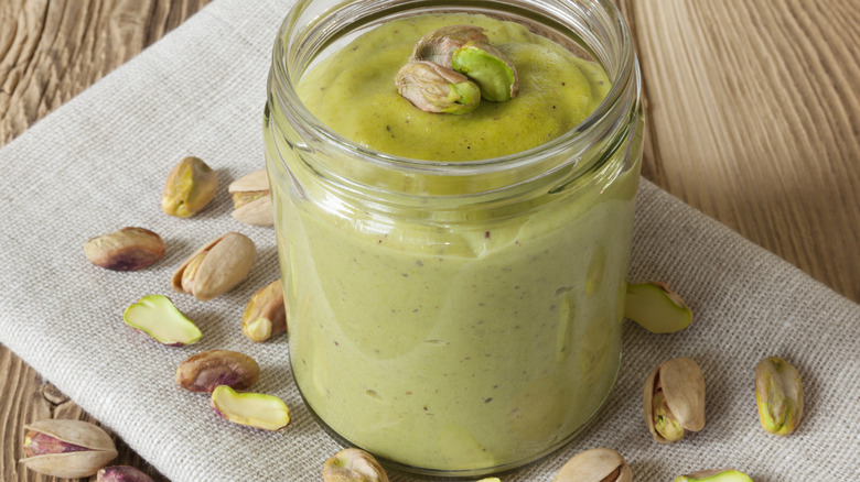 You can easily create a pistachio-flavored frozen coffee in your kitchen by blending together some coffee, milk of your choice, ice, and pistachio cream. If you need it to be sweeter, you can add extra sugar or syrup — but most pistachio creams are sweet enough for coffee as is, while giving the drink a more unctuous mouthfeel, as well as a delightful nutty flavor that will make your frozen coffee feel fancy and satisfying. Top it with some crushed pistachios for extra texture.