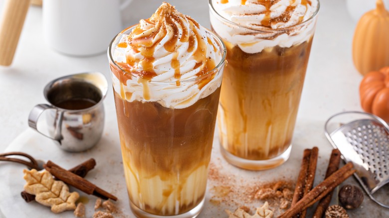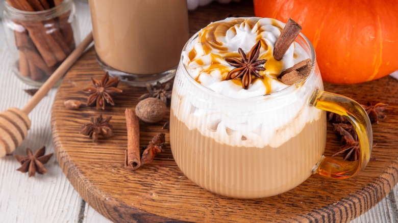 Pumpkin puree isn't your only option for making a perfect PSL at home. You can also use pumpkin spice sauce, which may be more convenient if you make the drink often. Pumpkin spice sauce is made of pumpkin puree, sweetened condensed milk, vanilla extract, and pumpkin pie spices, so it will save a lot of time when preparing a PSL from scratch. Plus, the sauce can be kept in the refrigerator for a few weeks. When you want to make a drink, simply mix your pumpkin spice sauce with espresso and add milk. This way, you won't have to stand over the stovetop and heat the PSL ingredients until everything is smooth and combined.