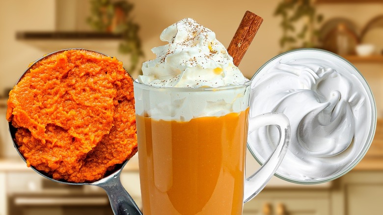 Not only will freshly made whipped cream taste better than the store-bought kind, but it can also be customized to your liking. "Instead of sugar, you can also use vanilla syrup, which will add a hint of vanilla to the whipped cream," says Choe, as an example. Another option is to make honey whipped cream, which combines heavy cream, honey, vanilla extract, and sea salt for a decadent PSL topping. If you're craving even more coffee flavor, add instant espresso powder to create coffee whipped cream. It's even possible to make a pumpkin whipped cream, if you can't get enough of the pumpkin flavor. Simply add pumpkin puree and pumpkin pie spice to a basic whipped cream recipe, and you've got yourself a tasty latte topping.