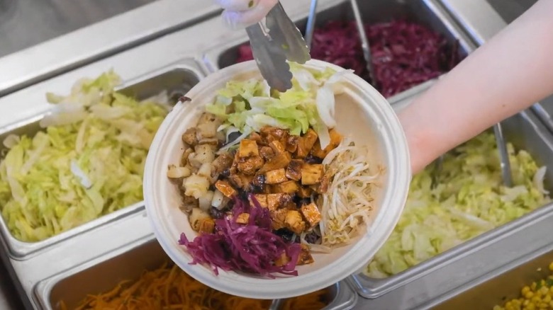 BIBIBOP offers customizable bowls inspired by Korean flavors, with a variety of bases, proteins, toppings, and sauces to choose from. Start by selecting a base, such as purple rice, sweet potato noodles, or supergreens salad. Then, choose from proteins like spicy chicken, steak, or tofu, and load up on fresh vegetables and toppings like pickled avocado, kimchi, or bean sprouts. Finish your bowl off with your choice of sauces, such as sesame ginger or spicy sriracha, all safe in the knowledge that there's no hidden gluten in your meal.