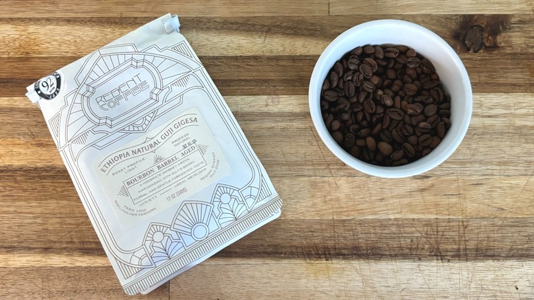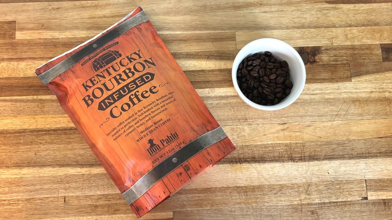 While some prefer to use bourbon in fall cocktails, others prefer a caffeinated twist on the beverage. Don Pablo's take on the bourbon coffee trend resulted in its Kentucky Bourbon Infused Coffee, a medium roast coffee whose Honduran beans are soaked in Kentucky Bourbon and then roasted to perfection. Though Don Pablo's offering ranked at the bottom of my list, it was still exceptionally good and, I believe, one of the most universally palatable. In fact, that's why it wasn't my personal favorite — other coffees on this list were simply more potent, unique, and aromatic.