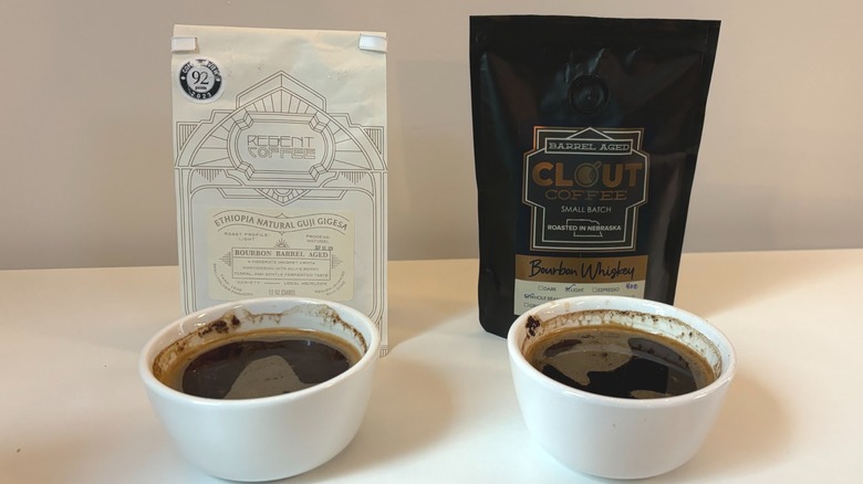 Since then, I've always opted for a barrel-aged or bourbon-infused coffee when I can. These are two slightly different methods: Barrel-aging coffee ages the green coffee beans in bourbon barrels for months to give them an aromatic, gently flavorful whiskey note. Bourbon-infused coffee, on the other hand, soaks the green beans in bourbon to impart the whiskey characteristics. As a barista with 10 years of specialty coffee experience, I was excited to try seven different coffees — all either bourbon barrel-aged or bourbon-infused — and let you know how they rank. I did a cupping of each coffee and I enjoyed all of them. Each has its merits; some are more subtle and, therefore, universally palatable, while others boast great intensity.