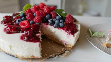 This easy dessert is a riff on our No-Bake Strawberry Cheesecake recipe. You'll start by making the crust out of Happy Belly Honey Graham Crackers, or your favorite store-bought brand, and butter. But when it comes to the filling, leave the strawberries and jam out of this version. Instead, add a box of dry pudding mix (not the cook-and-serve variety) to the cream cheese and other ingredients. Cornstarch is responsible for the upgrade in this recipe's texture, acting as a stabilizer and keeping the cake structurally sound.