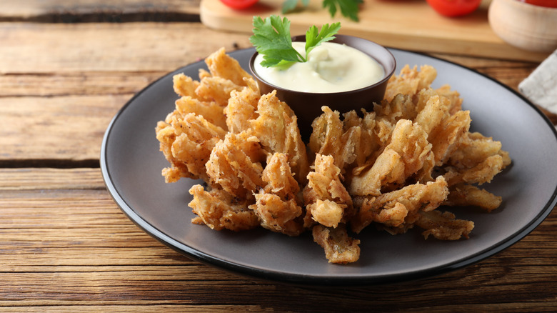 Texas Roadhouse foodies are well aware of what a Cactus Blossom actually is. It's simply a deep-fried onion that has been dunked in batter and then cut into what resembles flower petals. It's closely related and in direct competition with Outback Steakhouse's Bloomin' Onion. Outback opened its doors first in 1988, while Texas Roadhouse followed behind and was established in 1993.