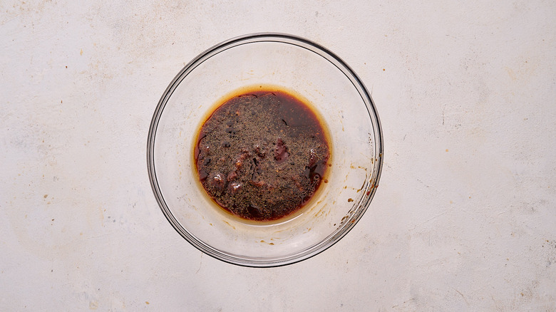 - In a bowl, whisk together the soy sauce, honey, brown sugar, sesame oil, garlic, ginger, and gochujang.