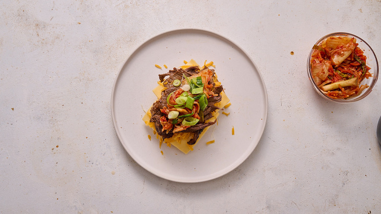 Beef bulgogi is a popular Korean dish that everyone needs to try at least once, especially when cooked over the smoky heat of a tabletop grill. Marinated in soy sauce, sesame oil, gochujang, and a sweet ingredient like brown sugar or pears, bulgogi is the perfect balance of salty and sweet, and the best thing to pair with banchan like kimchi and bean sprouts. What you might not find it paired with is cheese, an ingredient much less common in Korean BBQ spreads.