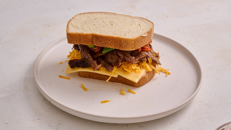 Though it might not be a staple at Korean BBQs, Korean cuisine often makes use of melty cheeses to counteract the spice of the red pepper pastes used in many of the dishes. Unlike most Asian cuisine, which is typically dairy-free, dishes like tteokbokki, budae jjigae, and dakgalbi are enhanced with slices of American cheese or shredded mozzarella. Developer Michelle McGlinn uses this idea in the form of a grilled cheese sandwich, toasting beef bulgogi between melty gouda and a pile of shredded mild cheddar. The rich and gooey cheese balances the spice of the beef and the tang of the kimchi for a perfect Korean-inspired sandwich that, like most Korean dishes, tastes even better washed down with soju.