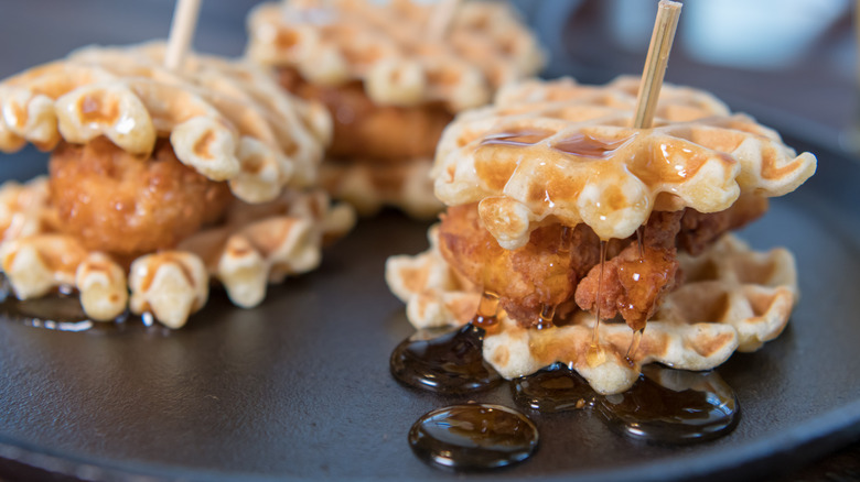 The Easy Addition That Gives Chicken And Waffle Sandwiches A Creamy Texture