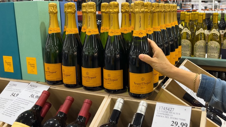 First, it's just not that great, and there are plenty of people over on Reddit who concur. The champagne often gets called out for having a bitter acidity that some might find unpleasant, as well as the kind of mouthfeel that makes you think you're still drinking it when you're not. Some other folks on Reddit have debated the price, with some clubs selling it for $30 instead of the long-standing $20. Also, the general consensus is that if Kirkland's prosecco is literally within reach — for around $10 a bottle, we might add — you should definitely get that instead.
