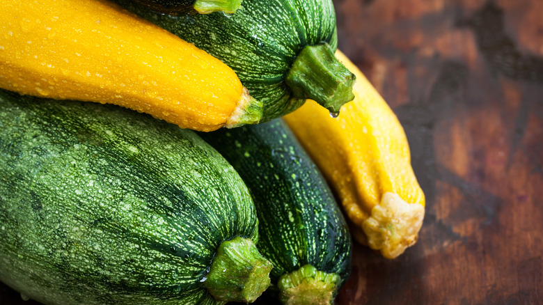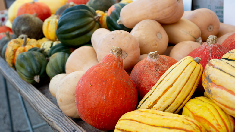 There are endless varieties of squash out there, but at the most basic level, they are categorized into two sections: Winter squash and summer squash. Summer squash has fewer varieties, and — you guessed it — it is grown in the warmer months. Winter squash typically has tougher skin and denser, starchier flesh, and it gets harvested during the chilly months. These popular types of squash couldn't be more different. If you're having trouble telling the difference, check to see if the skin is rubbery, thin, and malleable. If that's the case, then you are likely dealing with summer squash. If you knock against the squash and it makes a sound, then it's likely winter squash.