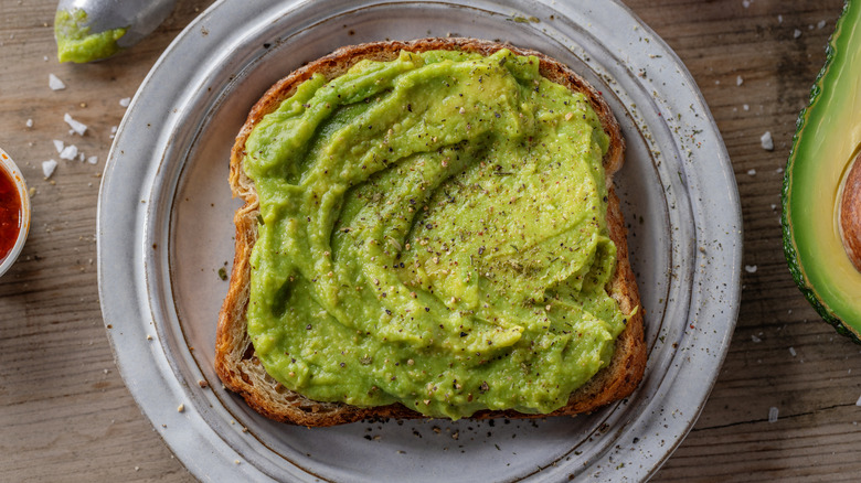 If you want to go a step further with this one, you can skip Starbucks' avocado spread altogether and make your own. If you go this route, make a big batch, spread some on your sandwich, and use the rest as guacamole for an afternoon snack. Alternatively, you could buy your favorite portioned avocado spread from your local grocer. Whether you make your own, get it from Starbucks, or buy it elsewhere, I recommend tasting the spread before you add it to your sandwich so that you can adjust its seasonings to your liking. That means you can add the necessary spices and seasonings, like salt, black pepper, lime, or cayenne, to your avocado spread before spreading it on your sandwich. However you do it, adding this popular breakfast accoutrement to your Starbucks breakfast sandwich will instantly make it just a little bit fancier.