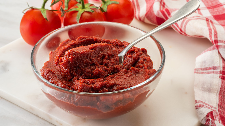 Tomato paste can be included in almost any kind of savory sauce you can brainstorm. It's incredible in gravy, a sauce that is typically designed to be umami-rich. It can help add brightness and life to your stir-fry sauce, it can help thicken your salad dressing and is an essential ingredient in any barbecue sauce. Don't forget to mix it into your burger and french-fry dipping sauces.