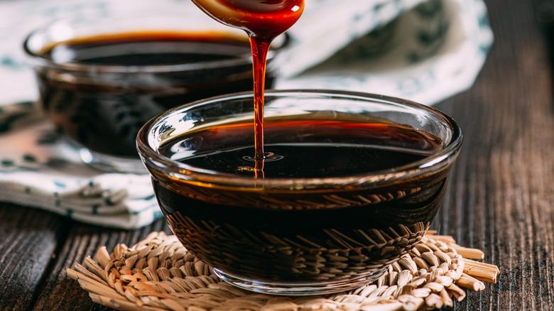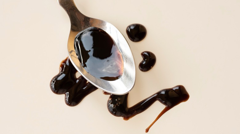 "Incorporate it in the middle of the cooking process to prevent it from overpowering the sauce, and let it cook down until it thickens a bit for a more bourbon-like consistency," Ben Wenzel recommends. Let the fruity, tangy notes shine when you want a brighter BBQ sauce. But since balsamic vinegar has a concentrated taste, it's best to only pour in a small amount to give your sauce that extra zing. This ingredient can also provide a rich, dark color to your sauce, similarly to bourbon. The resulting balsamic BBQ sauce tastes fantastic with many veggies and proteins, particularly if you're grilling or barbequing them.