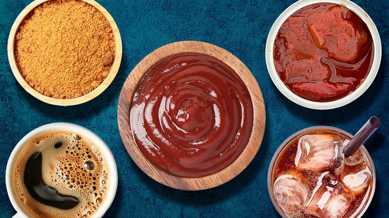Cola is frequently used as a meat marinade and tenderizer, so it's a delectable way to bring flavor to barbeque sauce while helping the protein remain supple. Rasheed Philips says that cola or root beer bring their sugar content, tang, and complex flavors that emulate the depth and sweetness supplied by bourbon. Cola can have caramel, vanilla, or cinnamon notes, while root beer has a spiced taste with hints of ginger, licorice, and wintergreen. Even a beverage like Dr. Pepper works. There's flexibility on the dark soda you use, so if you're loyal to one over another, simply pick your favorite. The effervescence fades after reducing so you don't have to worry about that aspect.